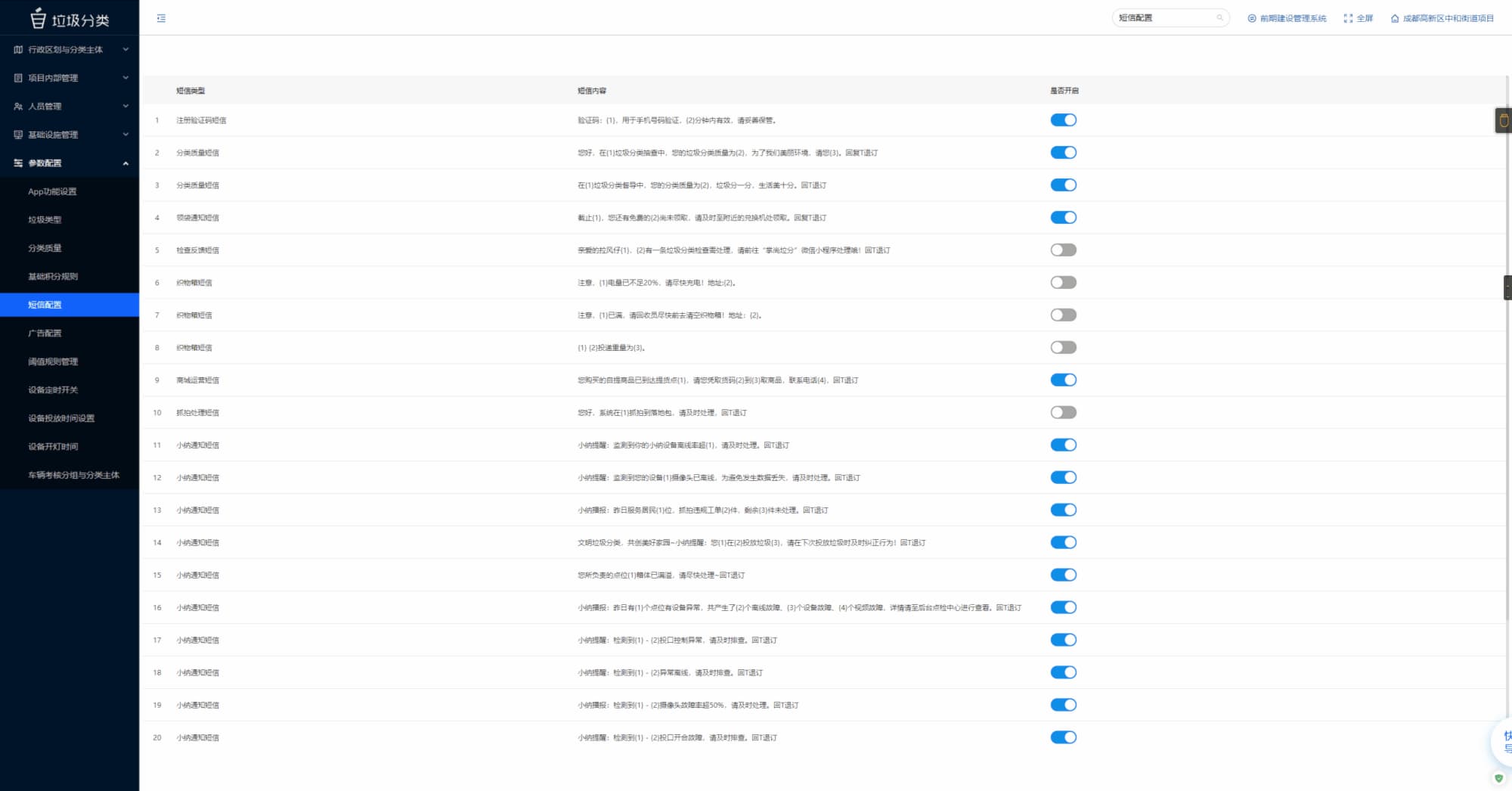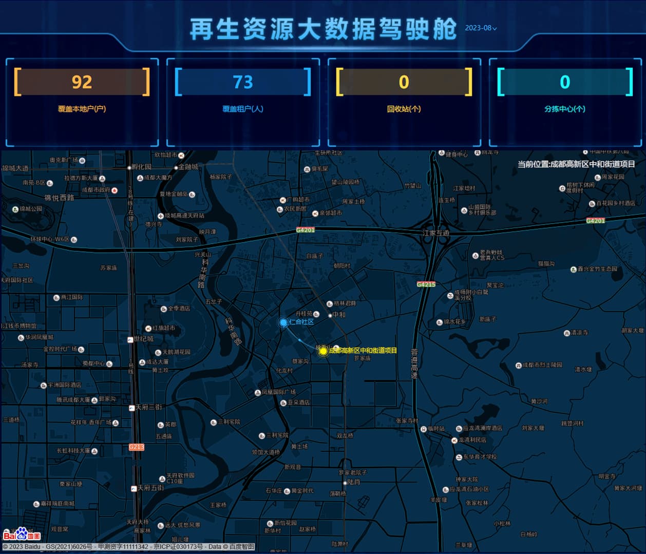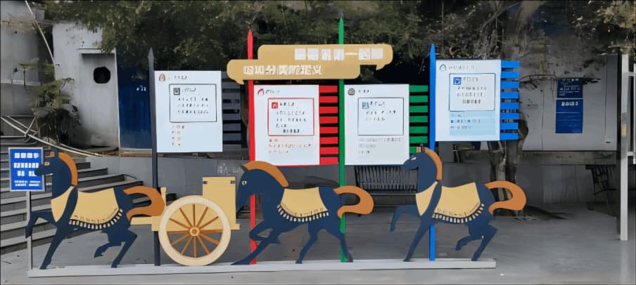 该项目服务范围包括遂宁高新区管委会办公楼、鹭栖湖学校、五里垭社区、七里桥安置小区、景宸府、九樾府、华翔城五期、望江山等物业小区,共服务约6509户居民、1343名师生。本项目针对性地打造了若干个垃圾分类特色示范场景,其中包括七里桥全场景分类文化小区、望江山垃圾分类文化宣传长廊、华翔城垃圾分类创意文化街、社区活动中心党建引领垃圾分类文化提升等特色场景,将这些场景进行了有机整合,形成了连片示范区。